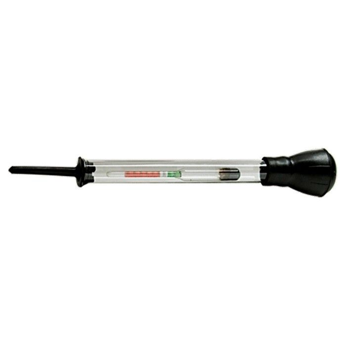 Ареометр для измерения плотности электролита Sparta 549125 — необходимый для водителей и механиков прибор, который значительно упрощает процесс проверки плотности электролита в аккумуляторе автомобиля. С помощью него можно определить необходимость замены раствора, а также измерить его качество. ПреимуществаБезопасная конструкция — полая колба с поплавком внутри исключает попадание токсичных веществ на кожу. Долговечность — колба из пластика более удобная и износостойкая в сравнении со стеклянными аналогами, она не разобьется при падении. Простота и точность замеров — цветная шкала с допустимыми значениями плотности помогает легко определить, нужно ли менять жидкость в аккумуляторе.