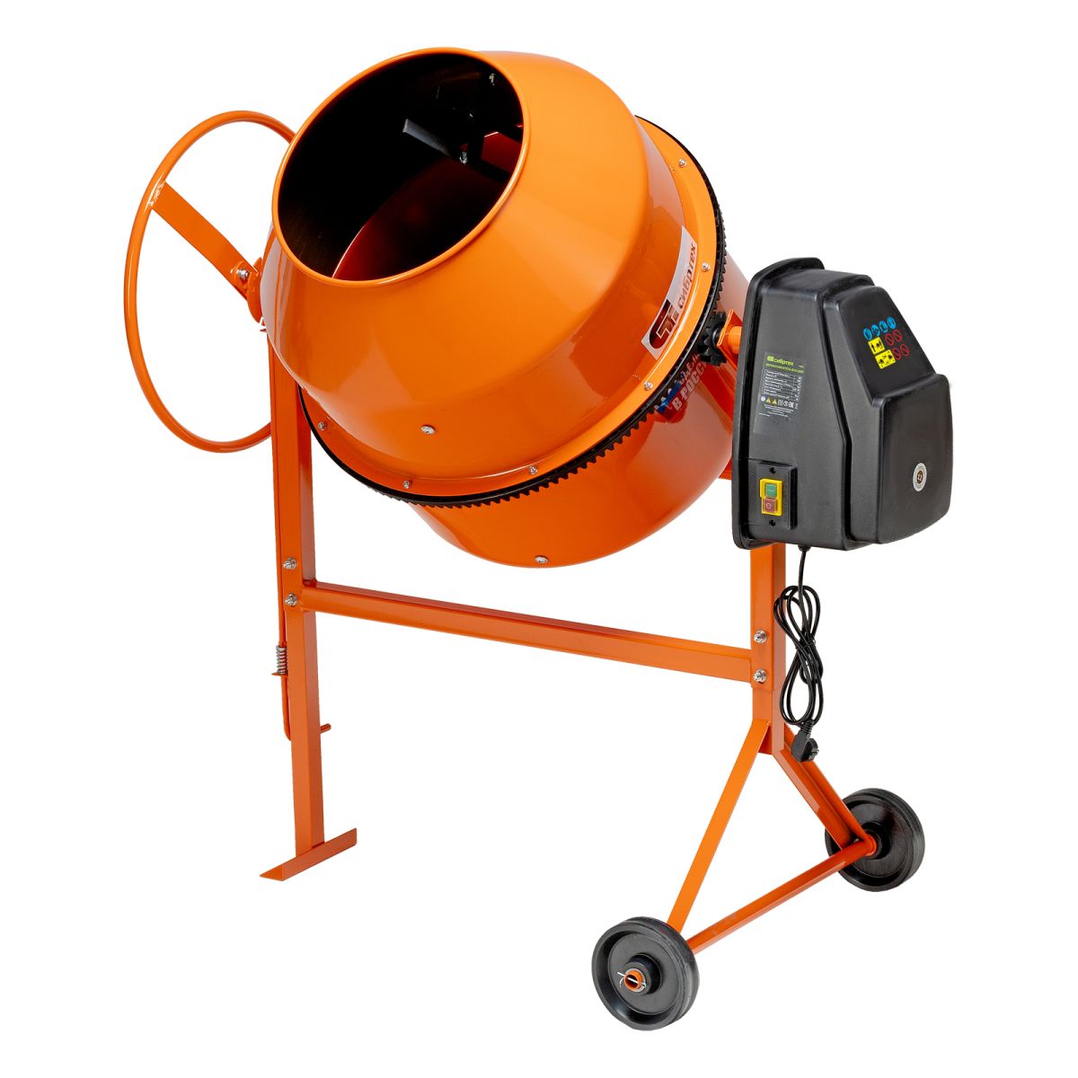 Бетоносмеситель Сибртех БСН-220П 95521 мощностью 1000 Вт предназначен для приготовления бетонных смесей и штукатурных растворов. Допускается использование крупнозернистых заполнителей с фракциями размером до 40 мм. Объем бака составляет 220 л, за один замес можно получить до 110 л готовой смеси. Время замешивания не превышает 2 минут, что позволяет избежать длительных перерывов в работе. Бетоносмеситель используется для проведения строительных работ небольшого объема. Двигатель мощностью 1000 Вт обеспечивает высокую производительность, при этом не создает значительной нагрузки на электросеть. Бетоносмеситель пригодится для проведения строительных работ небольшого объема. ПреимуществаНадежность — полиамидный венец устойчив к трению и не боится коррозии. Термозащита — в случае перегрева двигатель автоматически отключается, что предотвращает его поломку и позволяет сохранить высокий рабочий ресурс бетоносмесителя. Электробезопасность — токопроводящие элементы надежно изолированы, бетоносмесителю присвоен класс защиты II. Защита от внезапного включения — электромагнитный выключатель предотвращает случайный запуск двигателя при восстановлении напряжения питания бетоносмесителя. Удобная загрузка и выгрузка смеси — барабан наклоняется при помощи маховика и легко фиксируется в нужном положении. Стабильная работа — поликлиновый ремень устойчив к разрыву даже при высоких нагрузках. Ремонтопригодность — в конструкции отсутствует редуктор, поэтому при необходимости можно заменить венец, подшипники или шестерню без замены всего узла. Мобильность — прочные колеса облегчают перемещение бетоносмесителя по рабочей площадке.