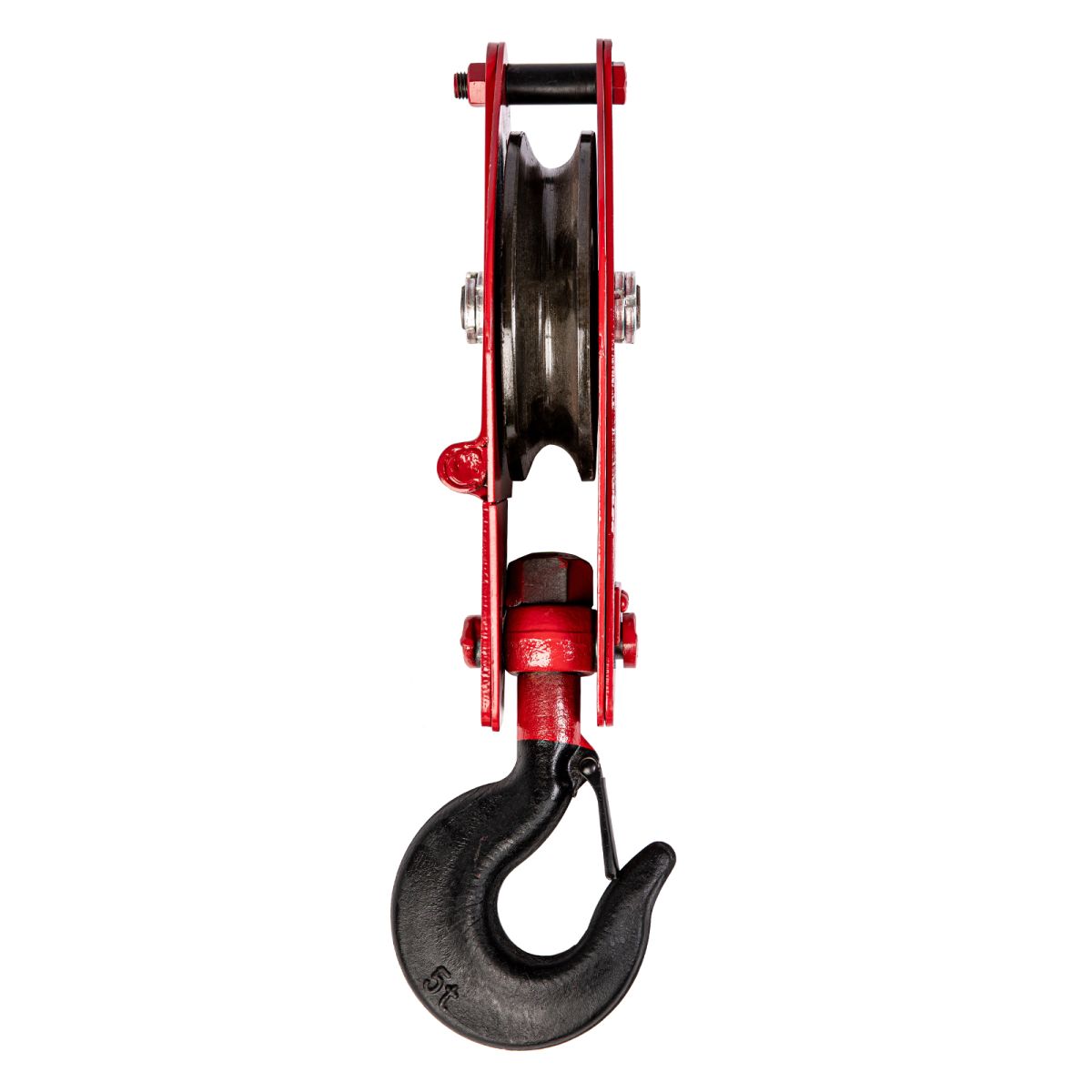Монтажный блок с крюком Matrix 51925 грузоподъемностью 5 т расширяет функциональные возможности ручного и электрического грузоподъемного оборудования. Он позволяет менять направление движения груза, а также увеличивает подъемную силу. ПреимуществаОткидная щека позволяет удобно установить трос или канат. Кованая предохранительная защелка на крюке обеспечивает безопасность работы. Блок пригодится при выполнении погрузочно-разгрузочных и монтажных работ на стройке, производстве и т. д.