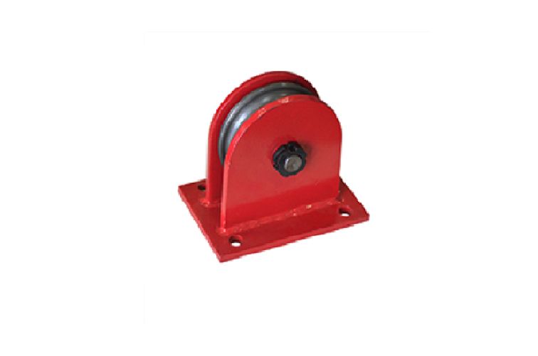 Блок с роликом. Имеет площадку для крепления к плоской поверхности с помощью болтов или анкеров.