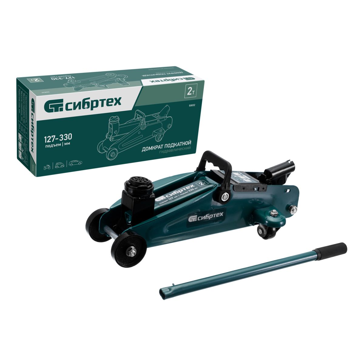Домкрат гидравлический подкатной, 2 т, 127-330 мм// Сибртех