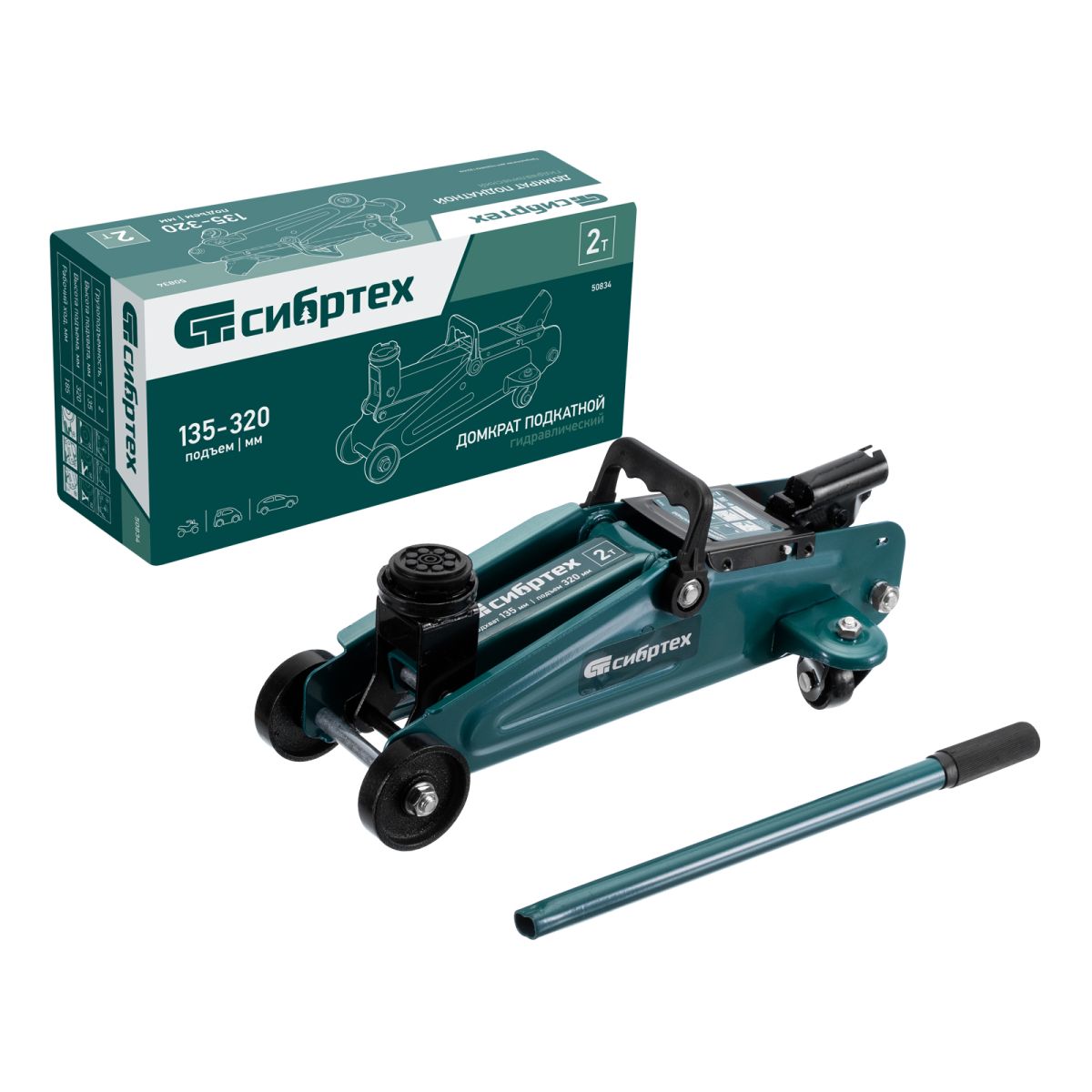 Гидравлический подкатной домкрат Сибртех 50834 с высотой подхвата 135 мм предназначен для подъема грузов массой до 2 т на высоту до 320 мм. Применяется для обслуживания автомобилей со стандартным клиренсом. Компактный домкрат подходит для самостоятельного использования автовладельцами. ПреимуществаБезопасность — клапан сброса избыточного давления защищает домкрат от перегрузки, предотвращая подъем груза массой более 2 т. Маневренность — благодаря поворотным колесам домкрат можно быстро подвести под груз. Небольшие габариты — подъемное устройство можно разместить в багажнике автомобиля. Комфортное перемещение — производитель предусмотрел удобную рукоятку с подпальцевыми выемками.