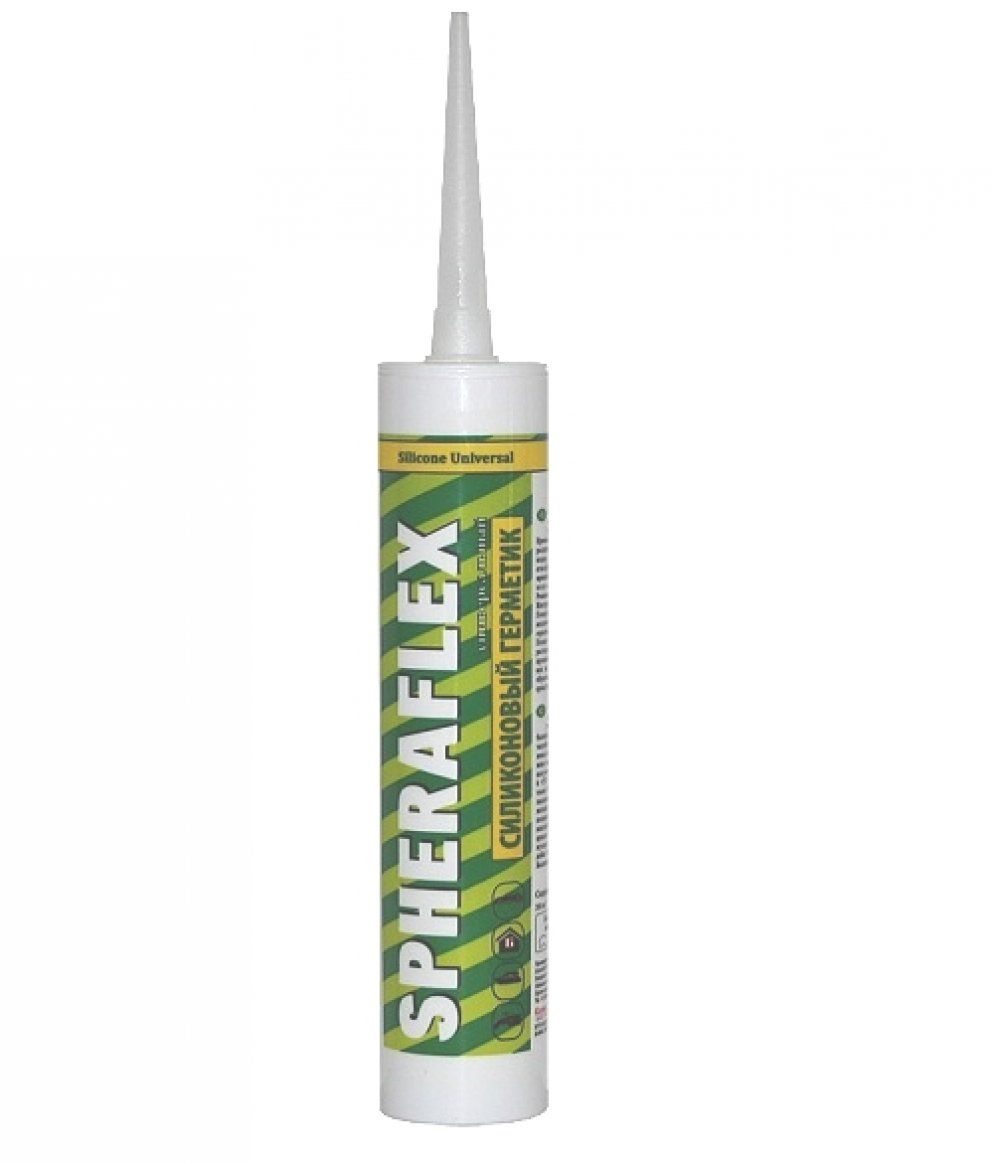 SPHERAFLEX Universal Silicon однокомпонентный универсальный силиконовый герметик. Прекрасная адгезия к эмали, стеклу, керамике, дереву, металлу, окрашенным поверхностям и многим другим не пористым поверхностям. Свойства: Эластичен после высыхания; Кислотное отвердение; Прекрасная адгезия ко многим строительным материалам и гладким поверхностям; Устойчив к старению, растрескиванию и выцветанию; Устойчив к воздействию моющих средств и химикатов; Применяется в любое время года; Имеет уксусный запах в процессе отвердения.
