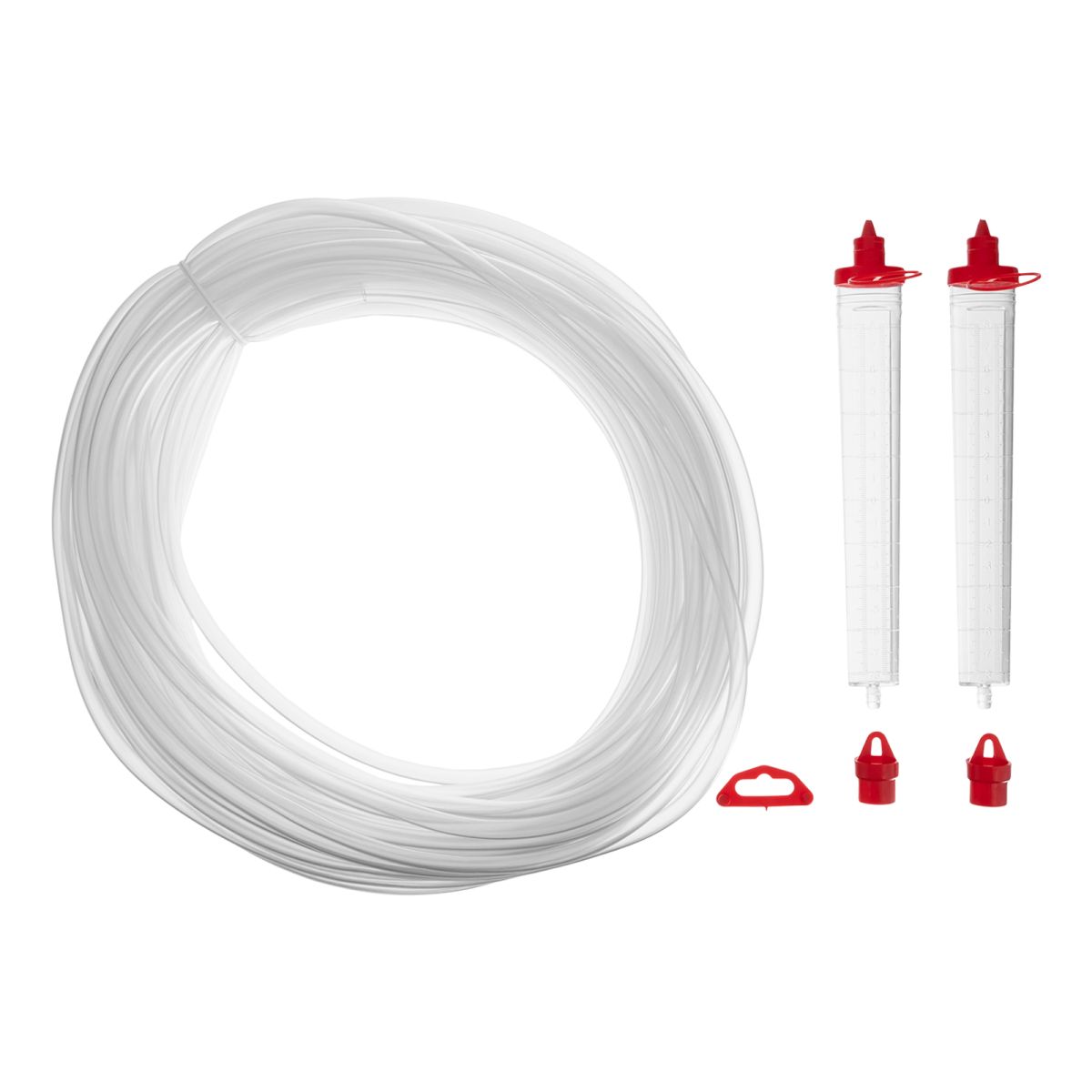 Гидроуровень Matrix 37092 с удлиненными колбами и рельефной градуировкой предназначен для выравнивания объектов на расстоянии до 10 м. Используется при проведении ремонтно-строительных работ: изготовлении опалубки, установке фундамента, кладке плитки. Особо светлые колбы с рельефной градуировкой облегчают считывание результатов измерения. ПреимуществаВозможность интенсивной эксплуатации — колбы изготовлены из ударопрочного полистирола, гибкий шланг устойчив к излому. Долгий срок службы — рельефная шкала не стирается со временем. Повышенная прозрачность колб — это позволяет вовремя замечать и устранять пузырьки воздуха, не допуская снижения точности измерений. Удобная транспортировка — на заводском пакете имеется подвесная ручка и клапан. Простое обслуживание и хранение — в комплект входит специальный подвес с держателем.