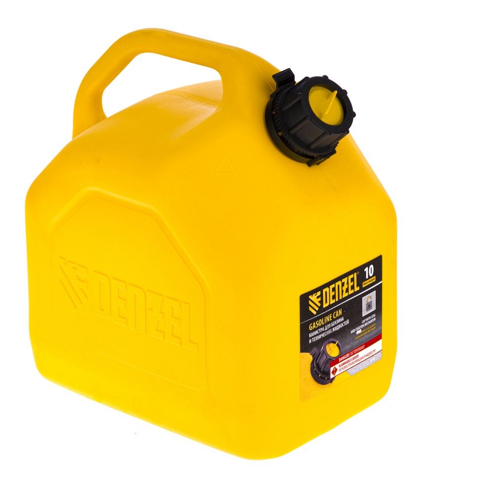 Премиум-канистра DENZEL 53129 объемом 10 л используется для хранения и транспортировки ГСМ. Ее удобно брать в дорогу, а также можно поставить на даче, или в гараже. Канистра пригодится для заправки автомобиля и бензотехники. ПреимуществаПрочность и высокий ресурс — изделие выполнено из полимера высокой плотности ПЭНД с присадками, не допускающими скопления статического разряда. Продуманная конструкция — носик убирается внутрь, что удобно для транспортировки канистры. Герметичность — резьбовая крышка предотвращает утечку и испарение жидкостей. Полупрозрачный корпус — можно отслеживать уровень заполнения канистры. Компактность — канистра на 10 л легко помещается в багажник автомобиля.