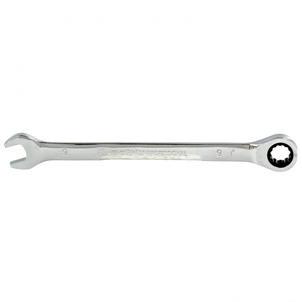 Ключ комбинированный трещоточный, 9 мм, CrV, зеркальный хром Matrix Professional