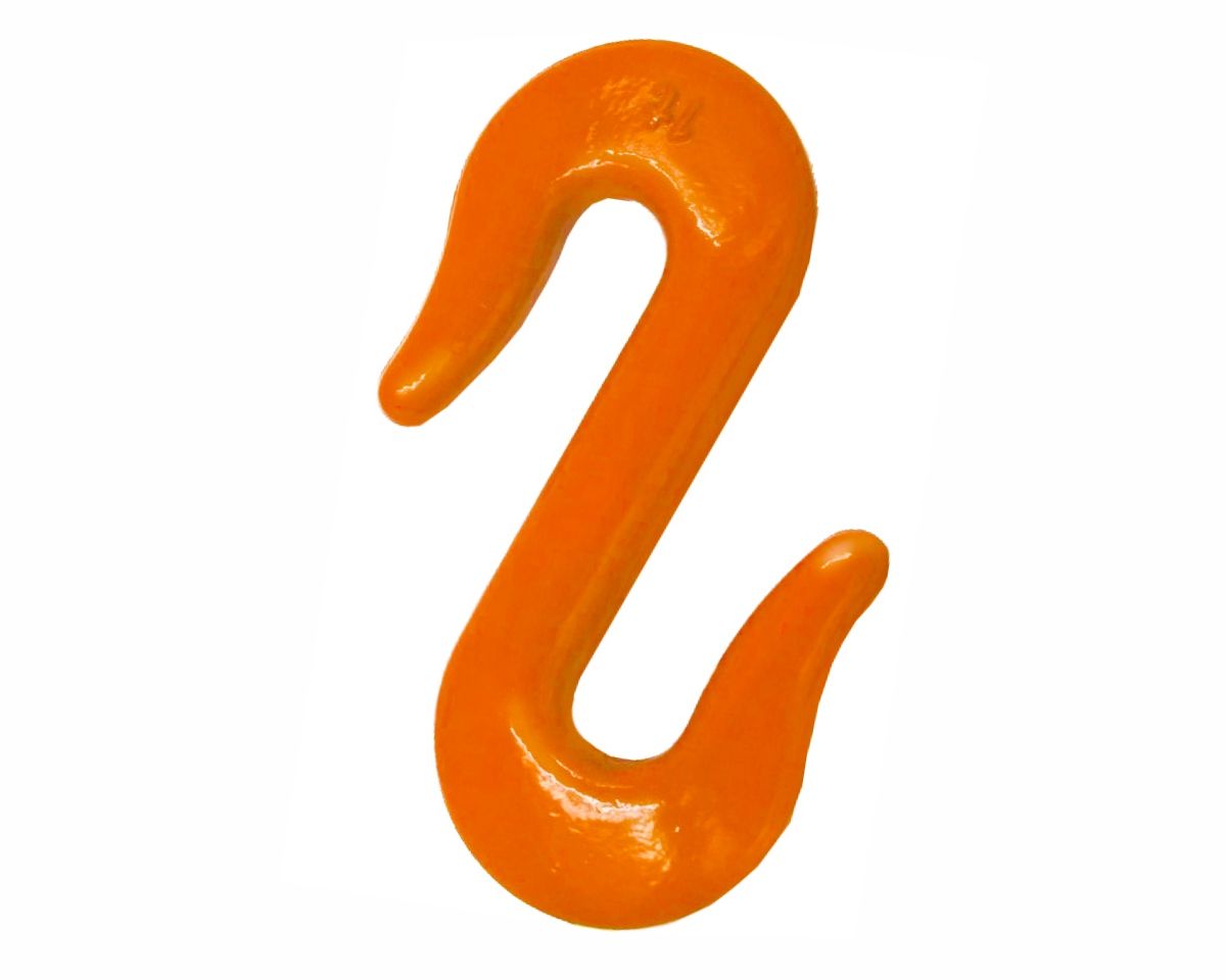 Металлический S-образный крюк за счет лаконичности устройства и простоты применения является универсальным крепежом, что пригоден для использования практически с любыми такелажными элементами. Он образует надежное соединение с тросами, цепями и канатами, закрепленными вертикально. Также S-образный крюк может стать надежным соединителем для горизонтально натянутых тросов, но только в том случае, если сила натяжки не ослабевает. Размерный ряд S-образного крюка определяется в зависимости от сечения проволоки, из которой он изготовлен.