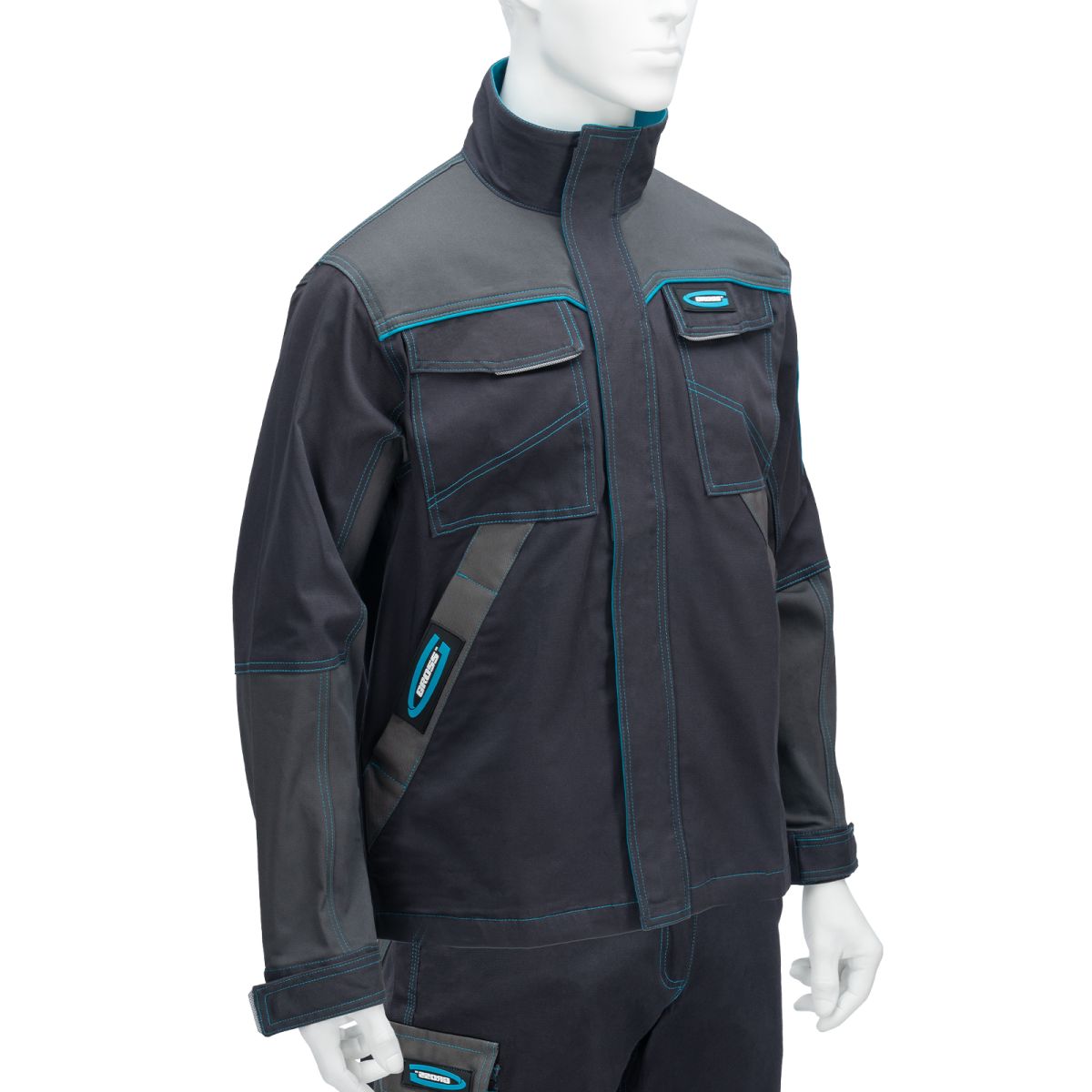 Профессиональная рабочая куртка Gross 90436 размера XXXL защищает пользователя от общих производственных загрязнений, нетоксичной пыли, ветра и незначительных механических воздействий. Рассчитана на рост 186-192 см и предназначена для использования в теплое время года или в отапливаемом помещении. Куртка изготовлена из ткани с 97-процентным содержанием хлопка и 3-процентным содержанием спандекса. За счет наличия хлопковых волокон в составе ткань прекрасно пропускает воздух и приятна на теле, а спандекс делает ее более эластичной, поэтому в куртке удобно работать. Одежда выполнена в практичном темно-сером цвете. ПреимуществаВлаго- и износостойкость — материал куртки устойчив к истиранию, на карманах имеются дополнительные нашивки из непромокаемой ткани. Функциональность — спецодежда оснащена воротником-стойкой, светоотражающими элементами, дополнительным клапаном на центральной молнии для защиты от ветра и 5 удобными карманами для мелочей. Безопасность — благодаря светоотражающим элементам куртка хорошо заметна в условиях плохой видимости. Комфортное ношение — манжеты и нижняя часть куртки регулируются клапанами на липучке.