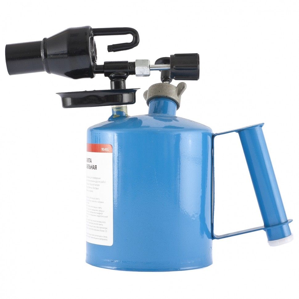 Паяльная лампа Барс 91451 с объемом бака 1,5 л предназначена для нагрева поверхностей при помощи открытого направленного пламени. Полной заправки 1,1 л топлива хватает почти на час работы при расходе 1,2 л/ч. Устройство используется для выполнения ремонтных и демонтажных работ — для пайки, термообработки деталей, установки термоусадочных трубок, снятия лакокрасочного покрытия. Также лампа будет полезна в сельском хозяйстве и в быту. ПреимуществаНадежность и долговечность — корпус и ручка изготовлены из прочной стали ST-12. Настройка подачи топлива и интенсивности пламени — для этого предусмотрен регулировочный винт. Быстрый выход в рабочий режим и устойчивое пламя — лампа оснащена камерой предварительного нагрева сопла. Удобная заправка — в качестве топлива используется бензин АИ 92/95, имеющийся на любой АЗС.
