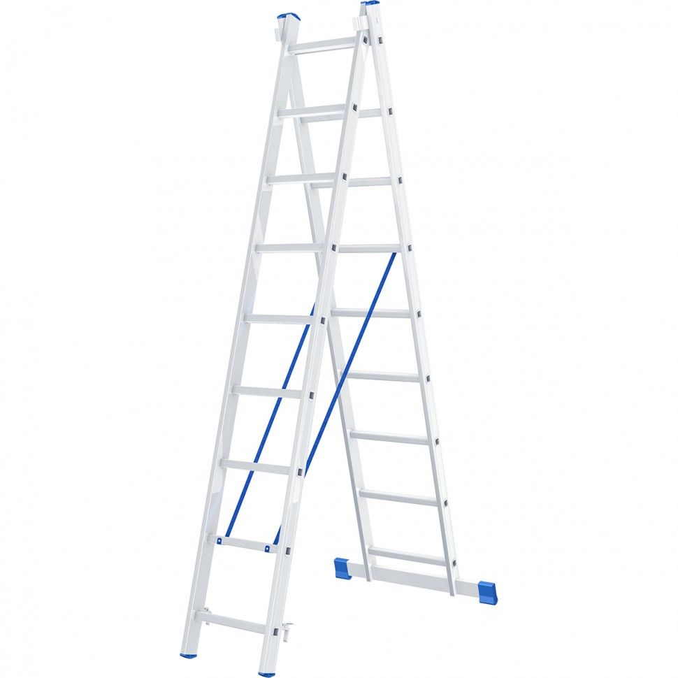 Лестница, 2 х 9 ступеней, алюминиевая, двухсекционная, Россия, Сибртех