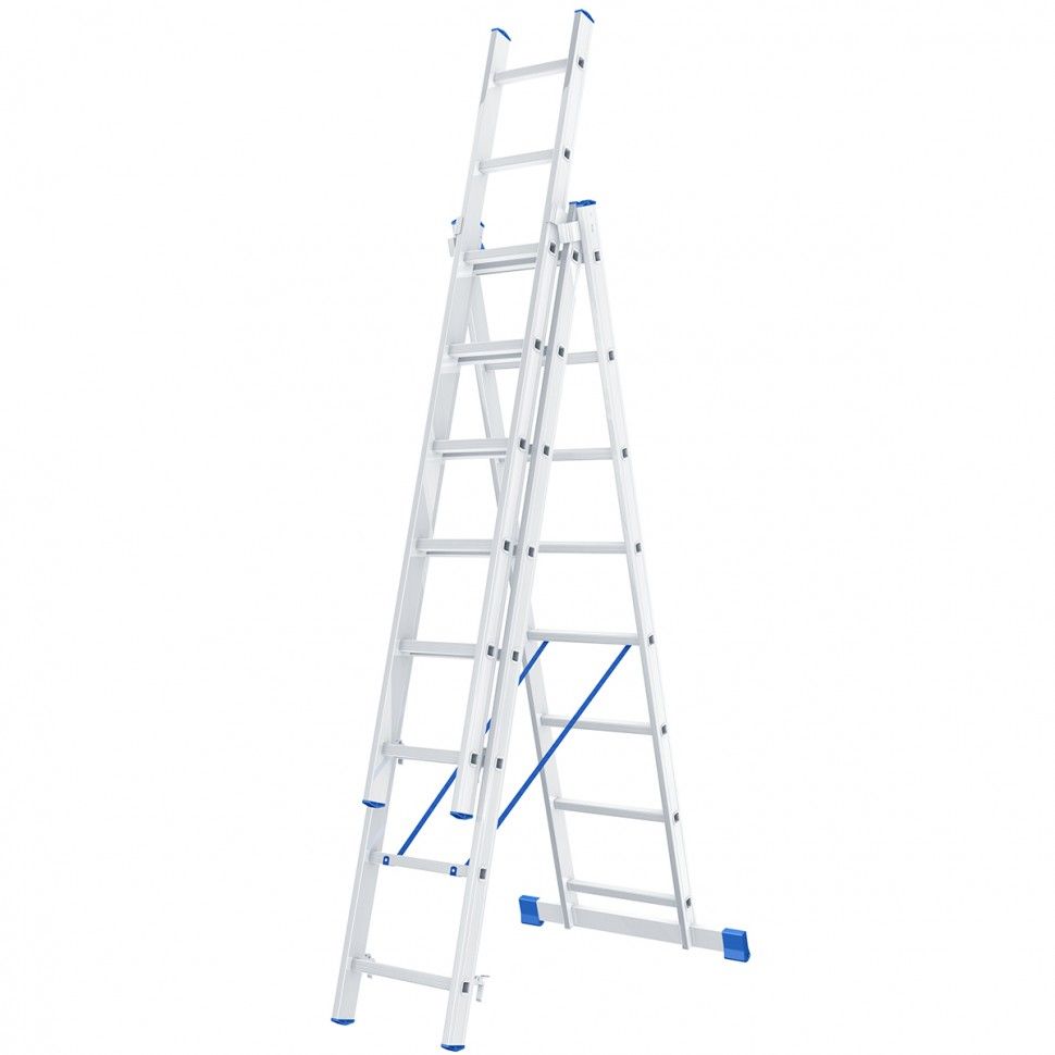 Лестница, 3 х 8 ступеней, алюминиевая, трехсекционная, Россия, Сибртех