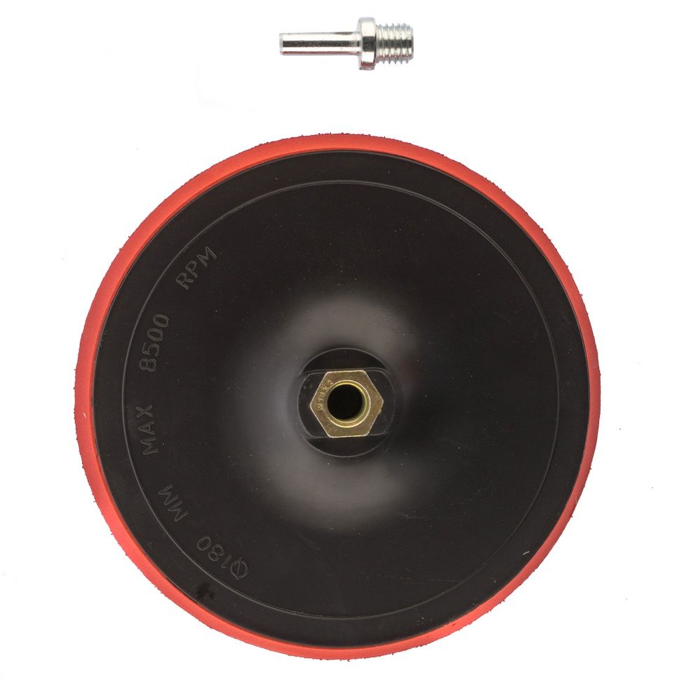 Насадка для дрели и УШМ с липучкой Matrix 76223 используется с дрелями и углошлифовальными машинами, поддерживающими оснастки диаметром 180 мм и имеющими рабочий диапазон вращения до 8500 об/мин. Предназначена для установки абразивных и полировальных кругов на ворсовой подложке. Насадка с демпферной вставкой из вспененного этиленвинилацетата (EVA) универсальна и подходит для всех видов полировальных и шлифовальных работ. ПреимуществаНадежная фиксация и быстрая замена круга под «липучку» — нейлоновая рабочая поверхность оснащена крючками velcro. Возможность установки на дрель — в комплекте имеется адаптер-переходник с резьбой М14 и хвостовиком диаметром 8 мм для фиксации в патроне дрели. Защита от коррозии — посадочная гайка и переходник оцинкованы.
