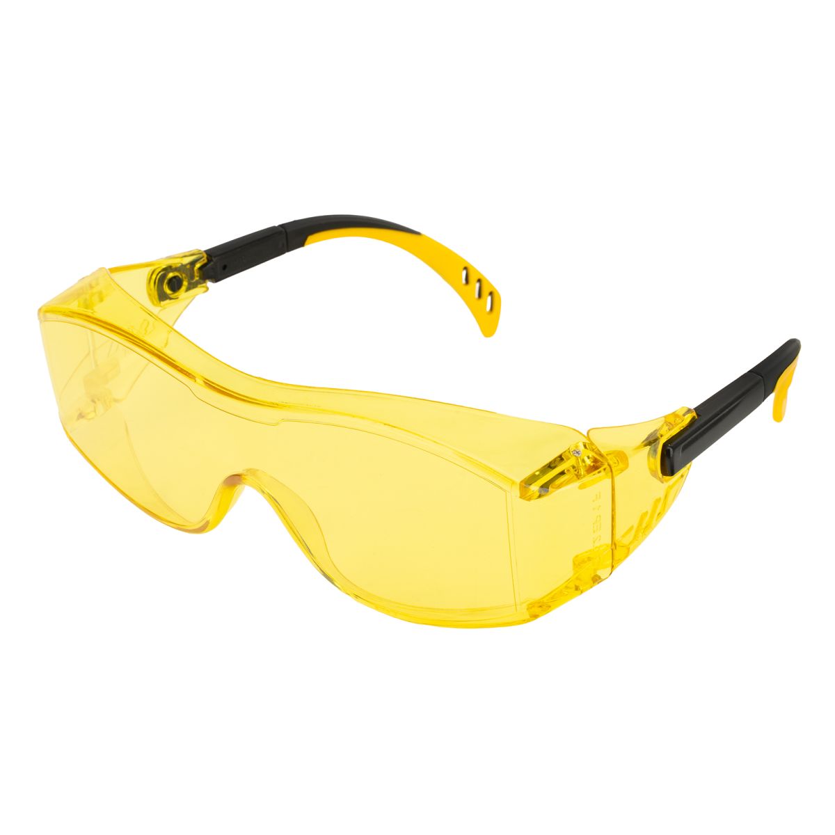 Очки защитные открытые, поликарбонатные, увеличенная желтая линза, регулируемые дужки// Denzel