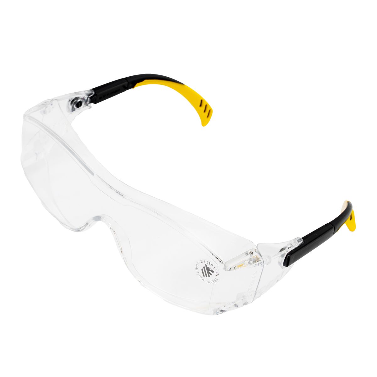 Очки защитные открытые, поликарбонатные, увеличенная прозрачная линза, регулируемые дужки// Denzel