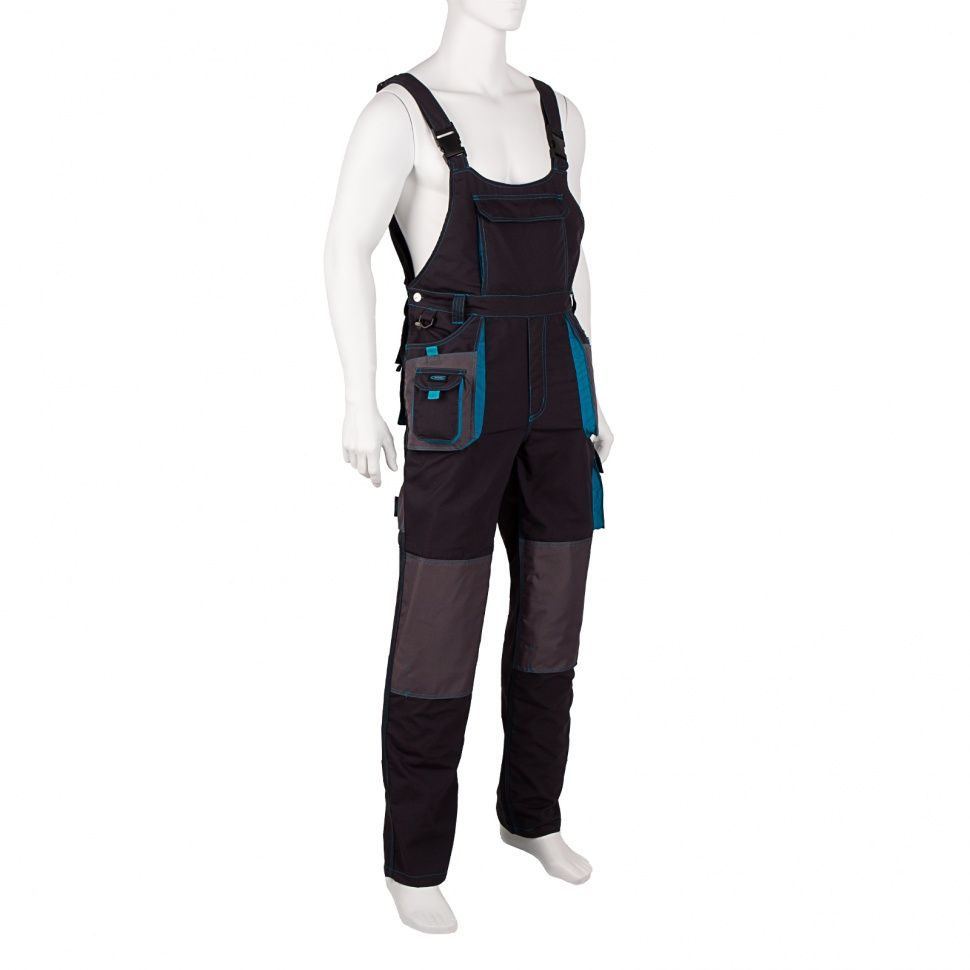 Полукомбинезон Gross 90353 размера L рассчитан на рост 179-185 см и предназначен для защиты рабочего от механических повреждений, ветра и пыли. Может применяться в отапливаемых помещениях или на улице в теплое время года. Изготовлен из смесовой ткани с 35%-м содержанием хлопка, которая не препятствует воздухообмену, поэтому в спецодежде комфортно работать. На 65% ткань состоит из полиэстера, что обеспечивает устойчивость к износу. Полукомбинезон необходим строителям, электрикам, садовникам, сотрудникам автосервисов, будет полезен и рабочим других специальностей. ПреимуществаКомфортная посадка — эластичный пояс плотно прилегает к телу, не сковывая движений. Функциональность — в 14 карманах можно разместить инструменты и необходимые мелочи, благодаря липучкам мобильный телефон и другие мелкие предметы не потеряются. Водо- и износостойкость — специальные нашивки с водоотталкивающей пропиткой защищают боковые карманы от истирания. Удобная работа — на коленной части предусмотрены карманы для амортизационных вкладышей (вкладыши приобретаются отдельно).