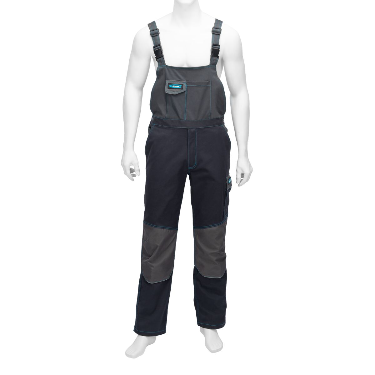 Профессиональные рабочий полукомбинезон Gross 90445 размера XXL рассчитан на рост 184-190 см и защищает пользователя от общих производственных загрязнений, нетоксичной пыли, ветра и незначительных механических воздействий. Подойдет для выполнения различных видов работ в теплое время года или в отапливаемом помещении. Выполнен в практичном темно-сером цвете. Изготовлен из ткани с 97-процентным содержанием хлопка и 3-процентным содержанием спандекса. За счет наличия хлопковых волокон в составе ткань прекрасно пропускает воздух и приятна на теле, а спандекс делает ее более эластичной, поэтому в полукомбинезоне удобно работать. ПреимуществаПрочность и высокий ресурс — ткань устойчива к истиранию, в местах наибольшей нагрузки имеются тройные усиленные швы, а также защитные нашивки из более плотной влагостойкой ткани. Безопасность — благодаря светоотражающим элементам полукомбинезон хорошо заметен в условиях плохой видимости. Функциональность — полукомбинезон оснащен 11 специальными карманами для инструментов и мелочей, светоотражающими элементами, а эластичный пояс и регулируемые лямки обеспечивают удобную посадку. Карманы на липучках — мобильный телефон, крепеж и прочие мелочи не выпадут во время работы.