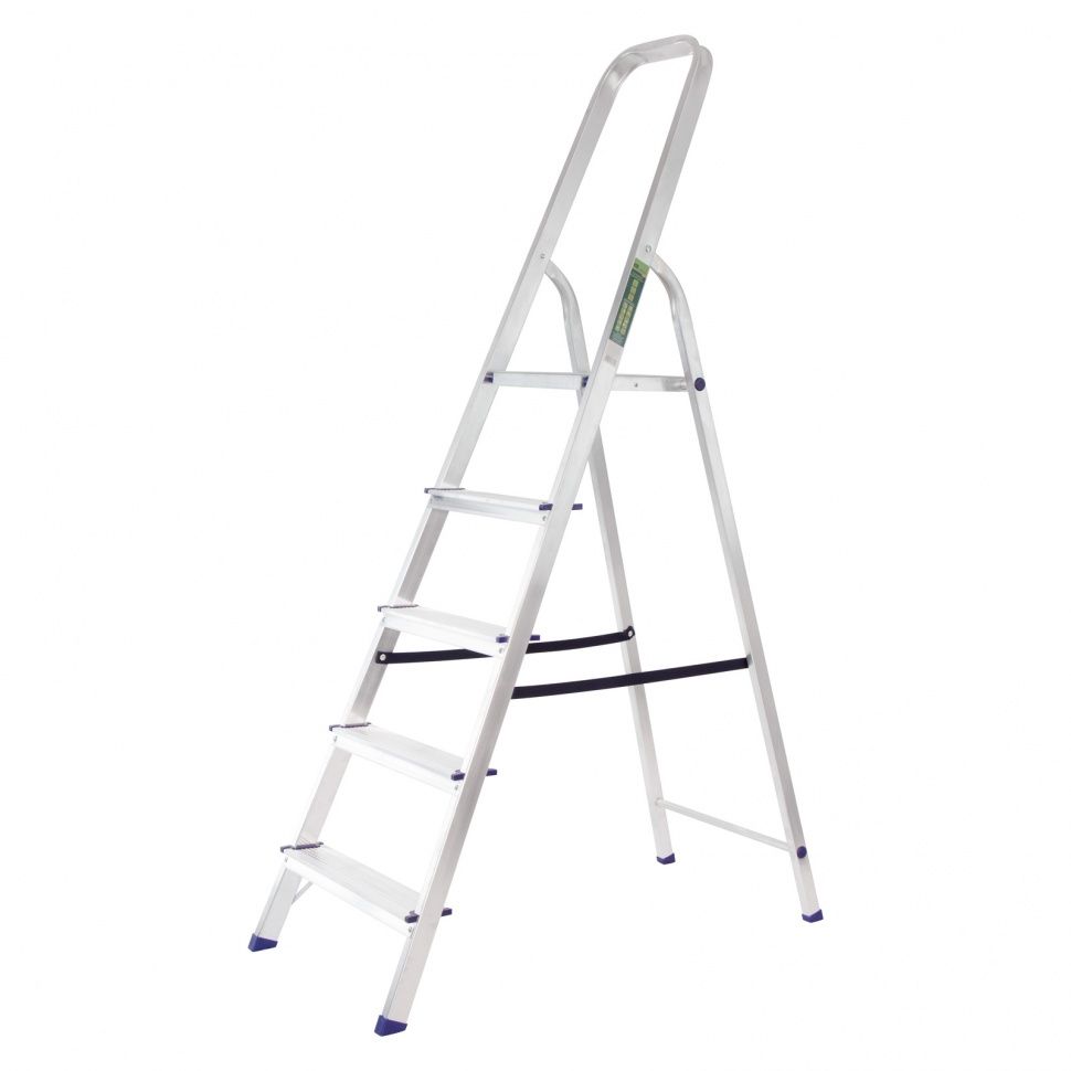 Стремянка алюминиевая Сибртех 97715 с 5 ступенями предназначена для выполнения работ на высоте, превышающей человеческий рост. Высокая дуга безопасности обеспечивает устойчивое положение пользователя. Площадка находится на высоте 102,1 см от опорной поверхности, рабочая высота стремянки составляет 302,1 см (при среднем росте пользователя 170 см). Стремянка пригодится во время строительных и ремонтных работ, позволит без лишних усилий повесить картину или шторы, покрасить стену, достать нужную вещь с антресолей или верхней полки шкафа, а также решить много других бытовых задач. Стремянка устанавливается на плоскую поверхность и не предназначена для работы с электроинструментом. ПреимуществаПродуманная конструкция — стальная рабочая площадка с зацепами надежно фиксирует стремянку в разложенном положении. Надежность — рама из прямоугольного алюминиевого профиля выдерживает нагрузку до 150 кг, широкие ступени закреплены заклепками, страховочные стяжки повышают прочность конструкции. Безопасность пользователя — рифленая поверхность ступеней предотвращает скольжение, пластиковые накладки на углах снижают риск травмирования. Защита опорной поверхности от царапин — на ножках имеются пластиковые заглушки. Вес 3,4 кг — со стремянкой без труда справится пользователь с любым уровнем подготовки. Компактность — габариты стремянки в сложенном состоянии составляют 1773 х 464 х 112 мм, поэтому ее удобно хранить и транспортировать. Внешний вид товара может незначительно отличаться от указанного на изображении, что не влечет изменения его качества.
