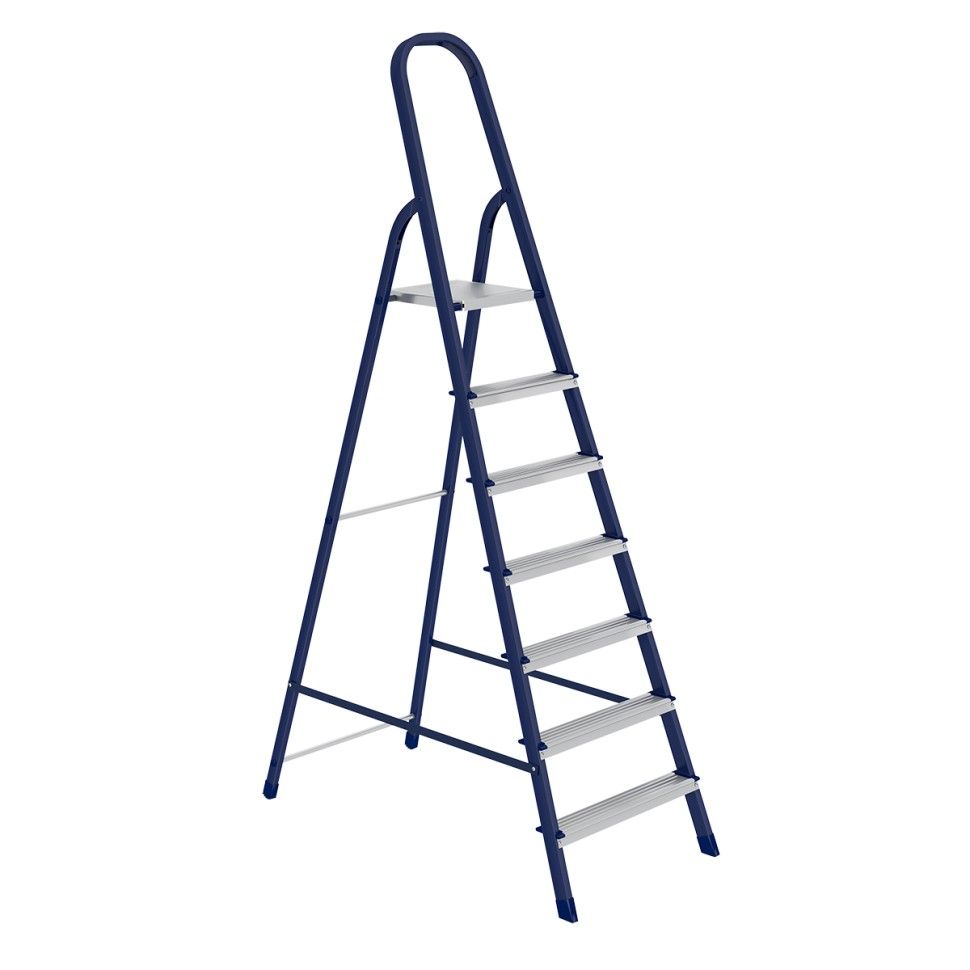 Стремянка стальная Сибртех 97848 с 8 ступенями облегчает выполнение ремонтных, отделочных, а также различных бытовых работ на высоте, превышающей человеческий рост. Площадка находится на высоте 164 см от опорной поверхности, рабочая высота стремянки составляет 364 см (при среднем росте пользователя 170 см). Высокая дуга безопасности обеспечивает удобную эксплуатацию. Стремянка пригодится дома и на даче. Для обеспечения устойчивости лестницу устанавливают на ровную поверхность, использование электроинструмента во время работы не допускается. ПреимуществаПовышенная прочность — рама и ступеньки изготовлены из стали и выдерживают нагрузку до 150 кг. Надежная фиксация в разложенном положении — рабочая площадка имеет специальные зацепы, также производитель предусмотрел прочные страховочные стяжки. Защита от коррозии — стальной профиль рамы покрыт порошковой эмалью. Безопасность пользователя — широкие профилированные ступени имеют рифленую поверхность, их углы защищены специальными накладками для защиты от порезов и царапин. Защита напольного покрытия — ножки с пластиковыми наконечниками не скользят и не оставляют царапины на опорной поверхности. Удобное хранение — размеры стремянки в сложенном состоянии составляют 2450 х 525 х 105 мм. Внешний вид товара может незначительно отличаться от указанного на изображении, что не влечет изменения его качества.