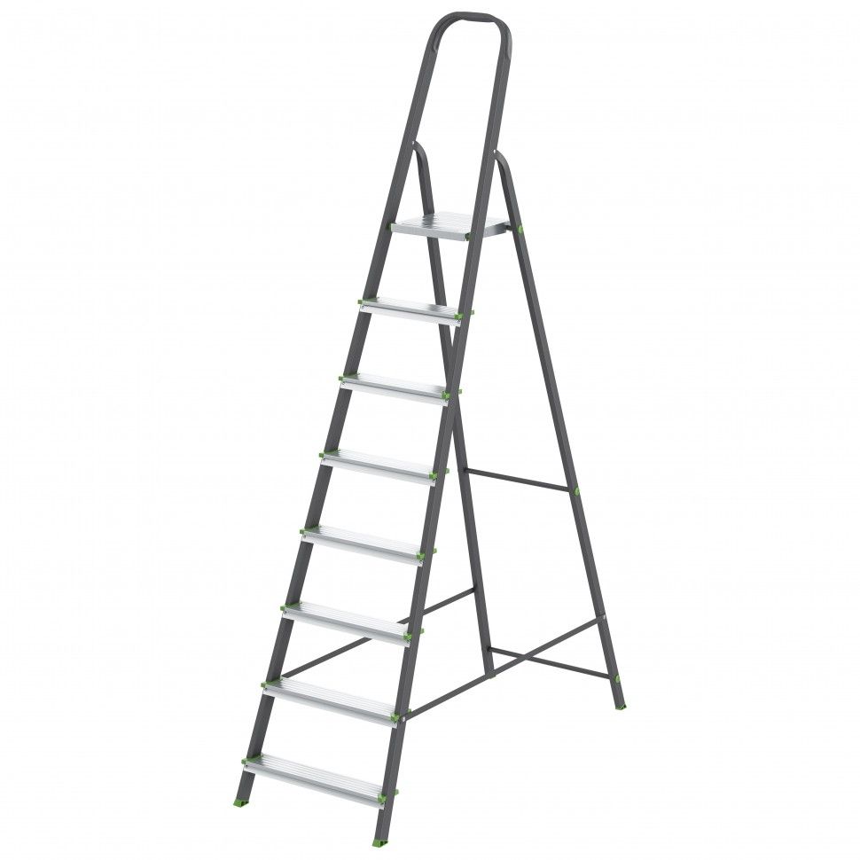Стремянка, 8 ступеней, стальной профиль, алюминиевые ступени, Россия // Сибртех