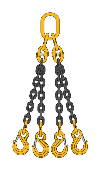 Строп цепной 4СЦ изготавливается методом сборки из цепей 8 класса прочности с использованием соединительных звеньев. Может эксплуатироваться как самостоятельный строп для навешивания на крюк крана. Может комплектоваться крюком укорачивающим для регулировки длины.