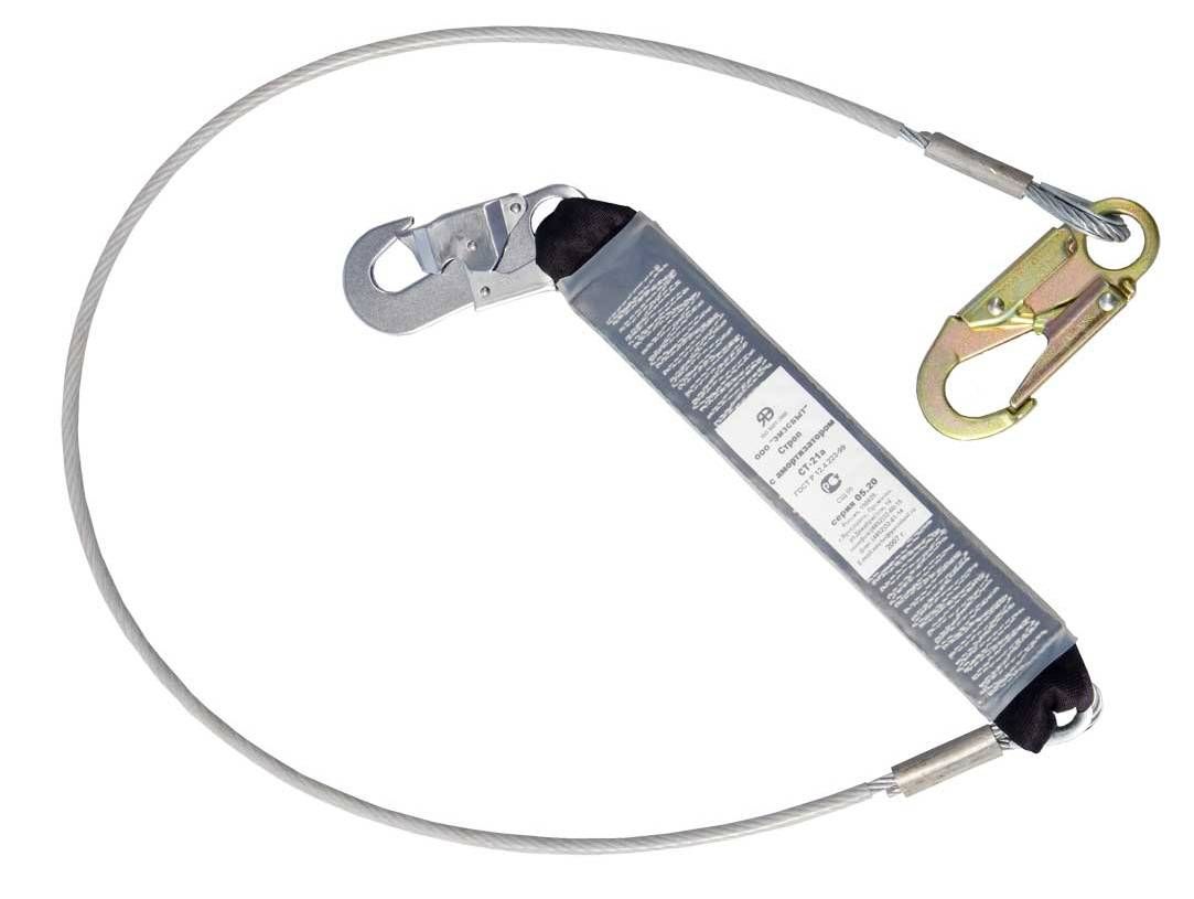 Предназначен для обеспечения безопасности при работе на высоте. Строп состоит из металлического троса в ПВХ-оболочке с закрепленными на концах двумя карабинами. Полихлорвиниловая оболочка предохраняет строп от возможного механического повреждения. Строп с одним большим и одним малым карабинами. Строп должен использоваться вместе с удерживающей системой.