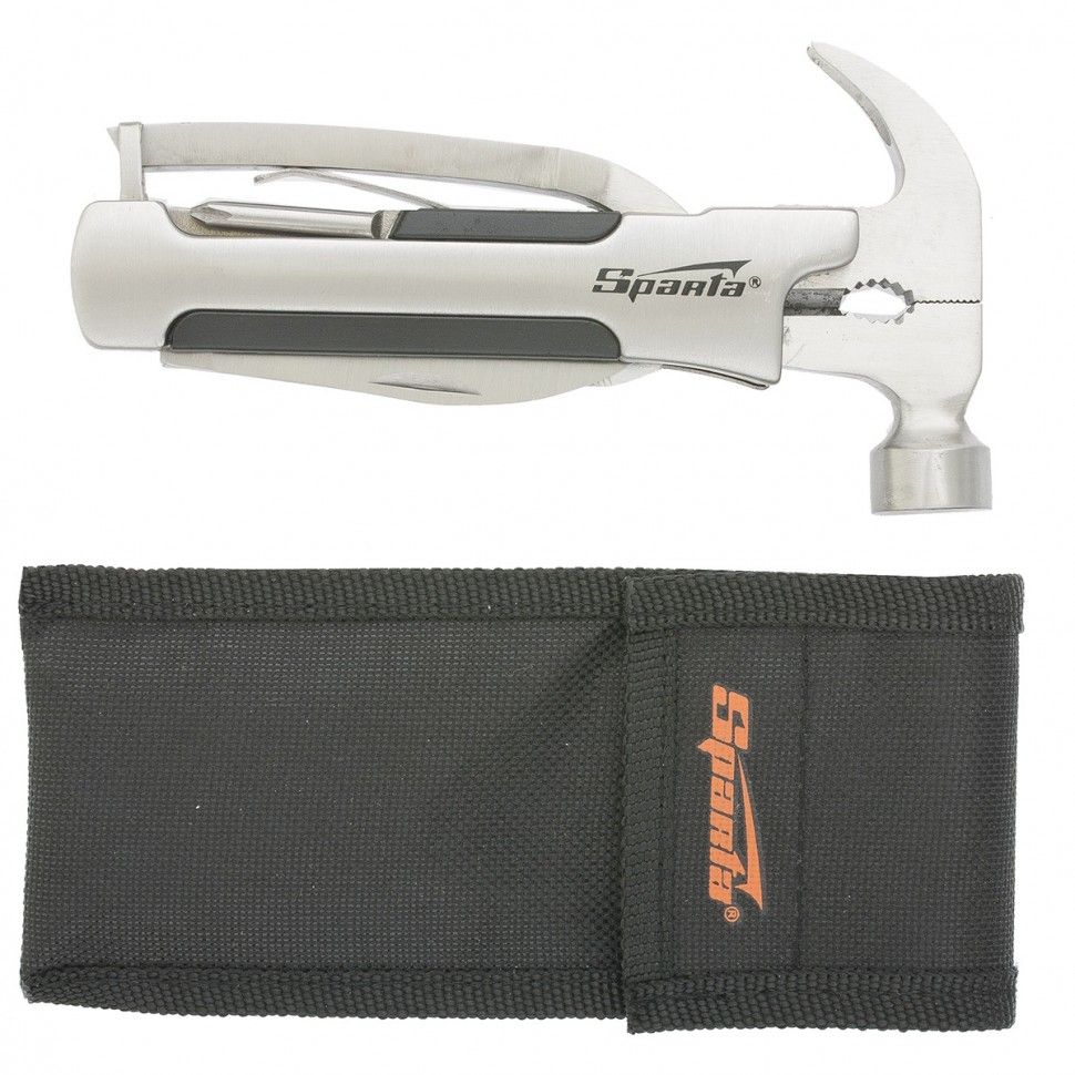 Трансформер Sparta 176075 выполняет 12 функций и включает в себя предметы, необходимые дома, на даче, рыбалке или охоте, а также в походе или поездке. Ножом можно разрезать веревку или вскрыть упаковку, а консервным ножом-открывалкой — открыть банку или бутылку. Молоток-гвоздодер пригодится для забивания и выпрямления гвоздей, а отвертки — для работы с резьбовым крепежом. ПреимуществаПрочность и долговечность — инструмент изготовлен из инструментальной стали. Удобное хранение и транспортировка — в комплект поставки входит специальный чехол. Компактность — складной трансформер помещается в карман, сумку или рюкзак.