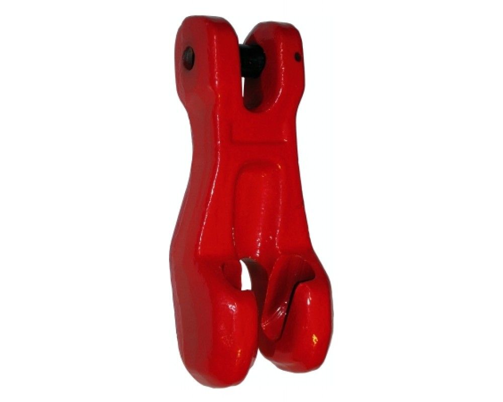 Укоротитель для цепей стальной клешневой не является концевым элементом. Применяется для регулировки длины ветви цепного стропа. Подбирается в соответствии с размером цепи и грузоподъемностью ветви стропа. Фиксация цепи на нужной длине происходит при помощи закладки звена цепи в захват-клешню. Данный вид укоротителя надежнее крюкового, так как при работе не происходит залома цепи, как в случае с крюковым укоротителем. Характеристики: 4-х кратный запас прочности на разрыв (8 класс прочности), имеет вилочную систему крепления.